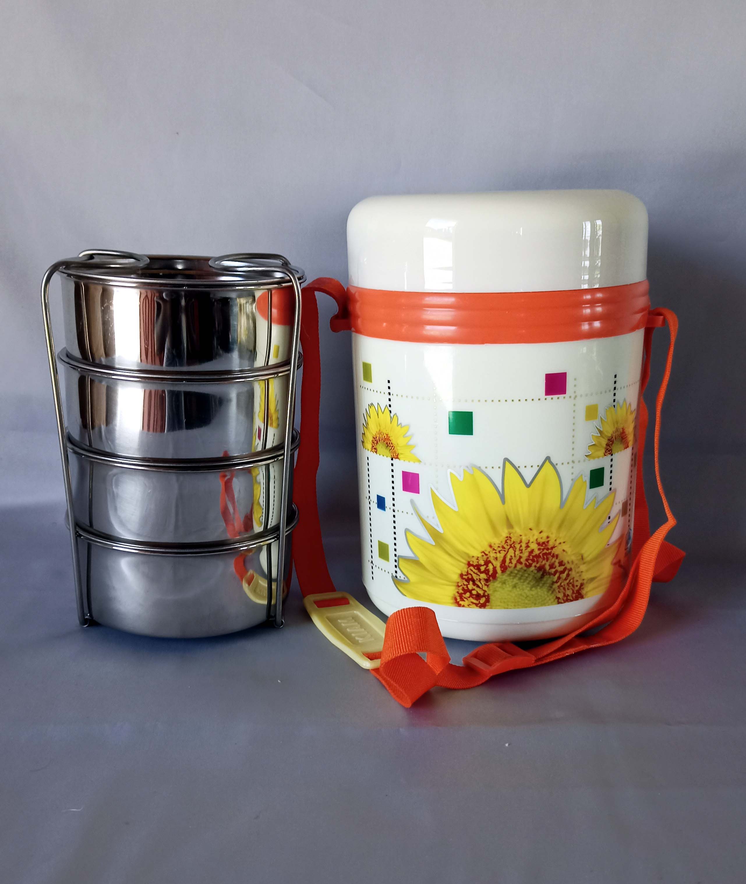 Kiam classic lunch pot four bati, Steel 4 pot with Best Quality Food Grade Virgin Plastic, Insulated With The Best Quality Insulating Material and Guaranteed. High Thermal Rating hygienic. Maximum Heat Retention Capacity (10 Hours). Good quality.
